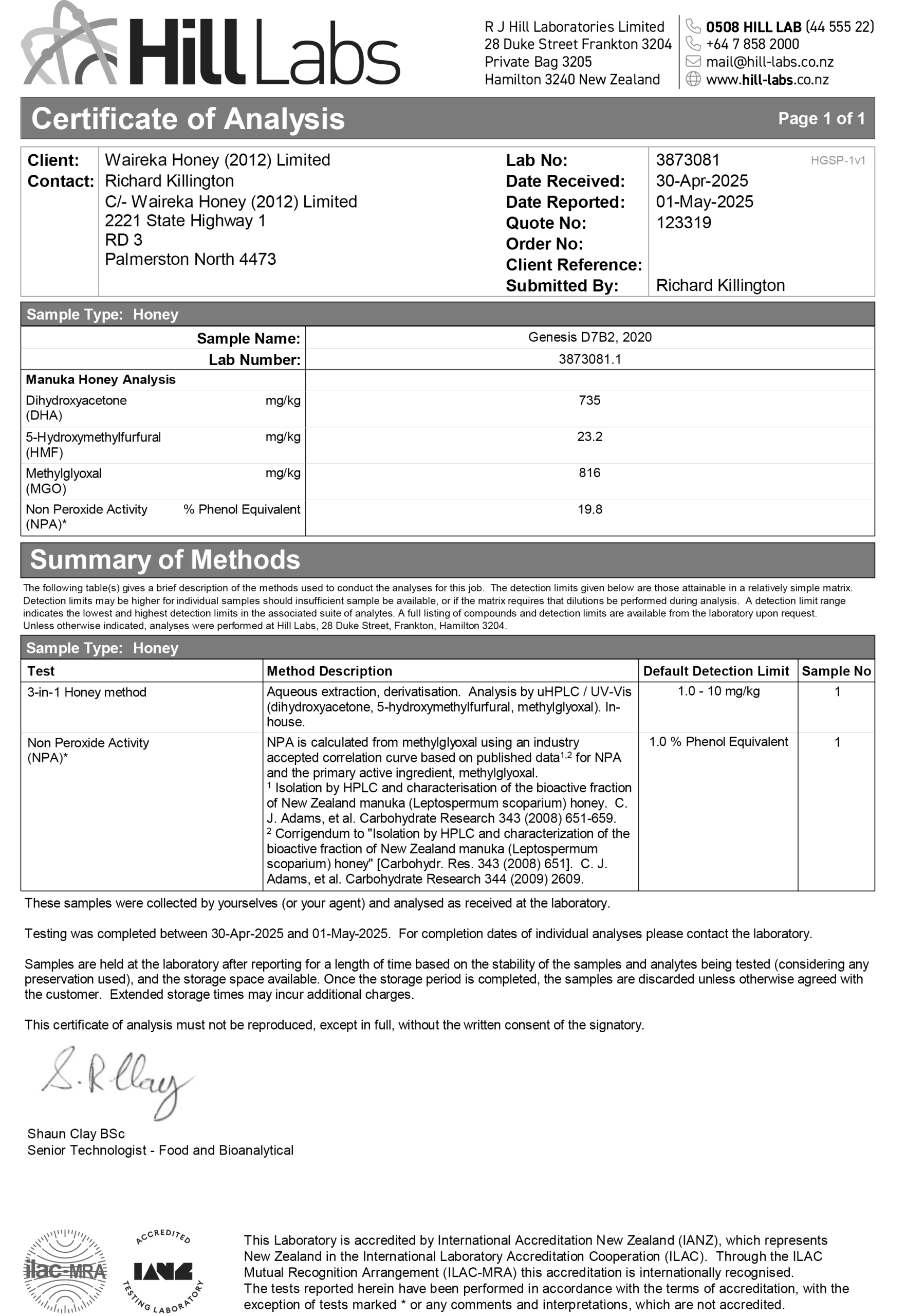 Every jar can be traced back to its source. The batch code on your jar links directly to these test results, ensuring complete transparency from hive to home.
